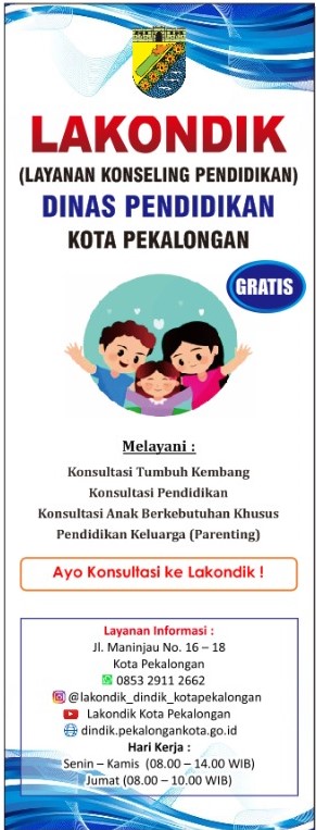 LAYANAN KONSELING PENDIDIKAN (LAKONDIK) DINAS PENDIDIKAN KOTA PEKALONGAN DINDIK 29 Juni 2021 [12:01:58] 1424 PENDIDIKAN PRINT + DOWNLOAD PDF